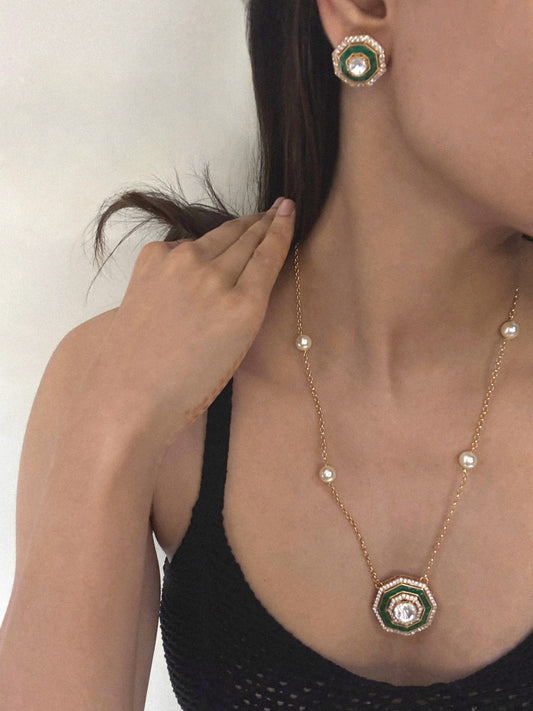 Nadira Polki Sage Pendant Set